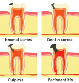 - 일반적으로 충치 제거 및 충전 치료 필요