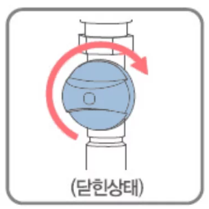 다음으로 보일러 본체 옆 가스 배관을 찾으세요. 가스 중간밸브가 배관 방향과 나란히 놓여 있어야 열린 상태입니다. 밸브 손잡이가 배관과 수직으로 놓여 있다면 잠긴 것이므로 나란하게 돌려주세요.