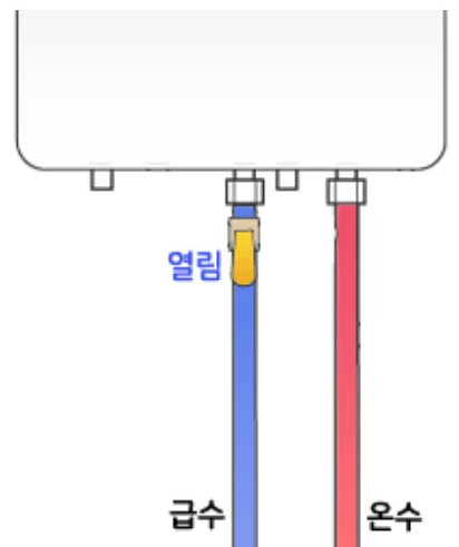 - 반쯤만 열려 있어도 물 공급이 부족해 에러가 발생할 수 있으니 확실하게 열어야 합니다