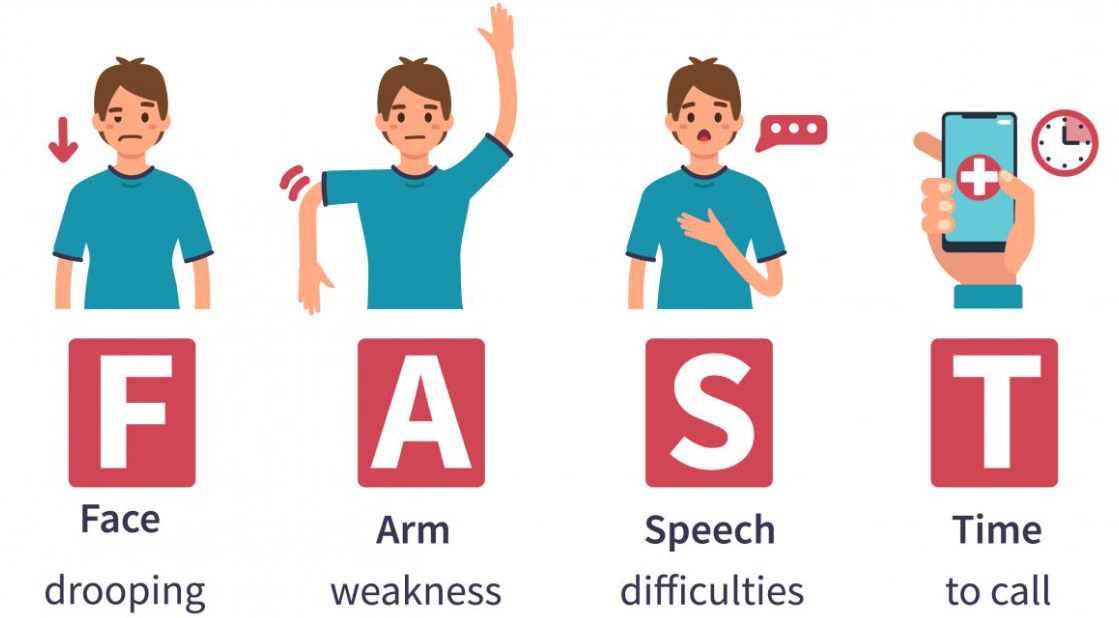 이러한 뇌졸중 전조증상을 인식하는 것은 결과를 좋게 개선할 수 있는데 중추적인 역할을 합니다. 미국 뇌졸중 협회(American Stroke Association)는 사람들이 가장 흔한 뇌졸중 증상인 얼굴 처짐, 팔 약화, 언어 장애 및 긴급 서비스 호출 시간을 기억하도록 돕기 위해 FAST 약어를 기억해두라고 권장하고 있습니다. (FAST: Face drooping, Arm weakness, Speech difficulties, and Time)