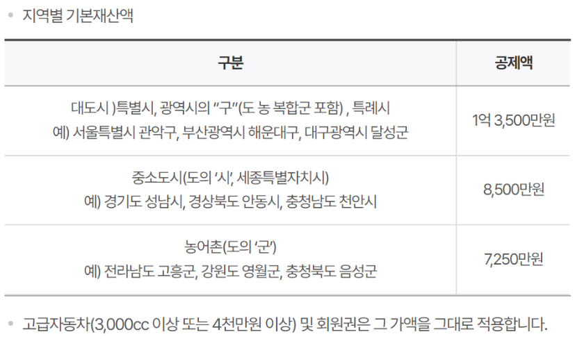 '지방세법' 제6조에 따른 회원권, 즉 골프회원권, 승마회원권, 요트회원권, 콘도미니엄회원권, 종합체육시설 이용회원권 등을 보유하고 있다면, 이는 기본재산 공제에서 제외됩니다. 이러한 회원권의 가치는 월 100%의 소득환산율을 통해 계산됩니다.