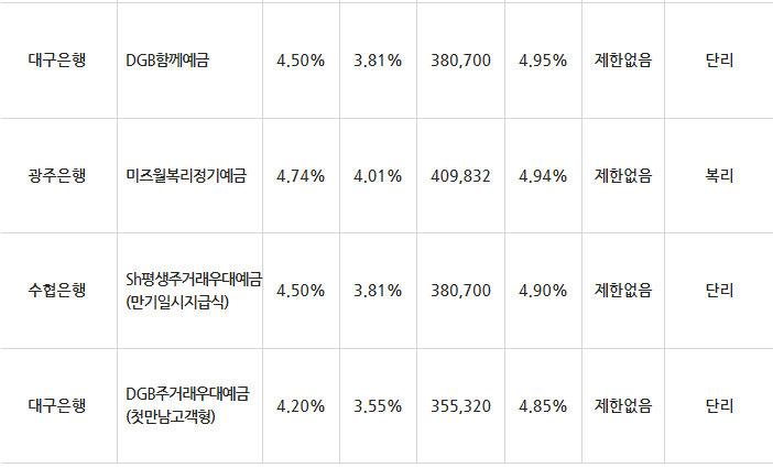 5%의 정기예금 금리를 놓쳐 아쉬운 분이라면 다음의 순위를 참고하시기 바랍니다.