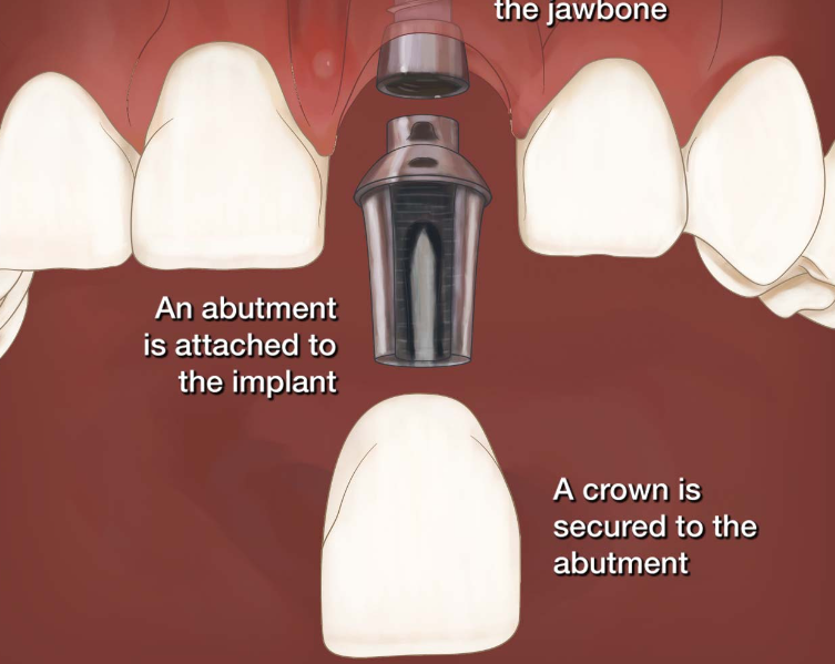 5. Abutment (어버트먼트) 배치: 임플란트가 완전히 통합되면 작은 커넥터 포스트인 Abutment가 임플란트에 부착됩니다. 어버트먼트는 앞니 임플란트 수술시 새 치아를 고정하는 역할을 합니다.