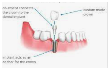 크라운: 지대주에 식립되는 보철 치아입니다.