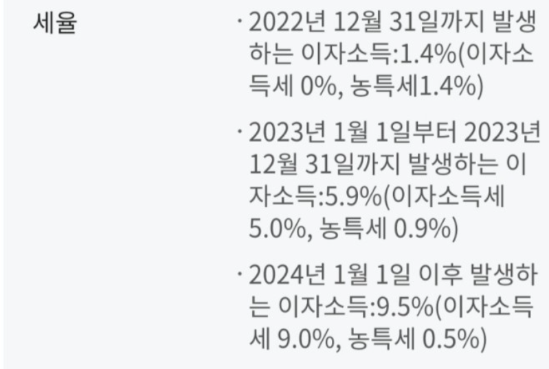 2023년 내 가입 시 5.9% ▶ 이자소득세 5% + 농특세0.9%