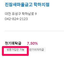 새마을금고 예금금리 가장 높은 곳은 6개월만기 최고 7.5% 진잠새마을금고 학하지점입니다.