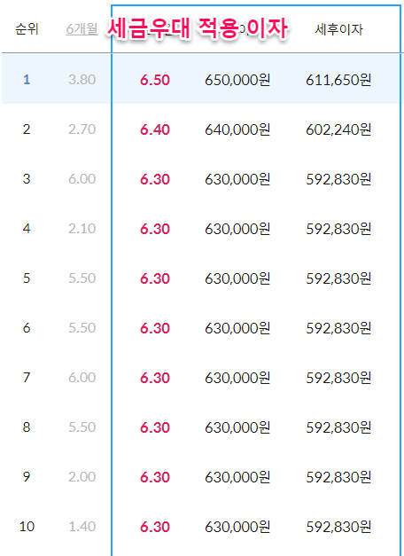 조건 : 12개월만기 연 6.5% 1천만원 예금