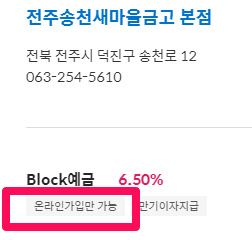 예를 들어 현재 가장 높은 금리를 제시하는 전주송천새마을금고의 경우,