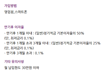 가입금액 최소 1만원이상 신규, 납입한도는 매월 100만원 이하